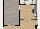 - pozostáva z predsiene, jednej veľkej miestnosti rozdelenej na 2 samostatné izby, predelené posuvnou stenou, z obývacej kuchyne, kúpeľne, WC, oddeleným priestorom na práčku