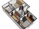 - izby - plávajúca podlaha, kuchyňa, predsieň, komora a skladový priestor z chodby, kúpeľňa, WC - dlažba