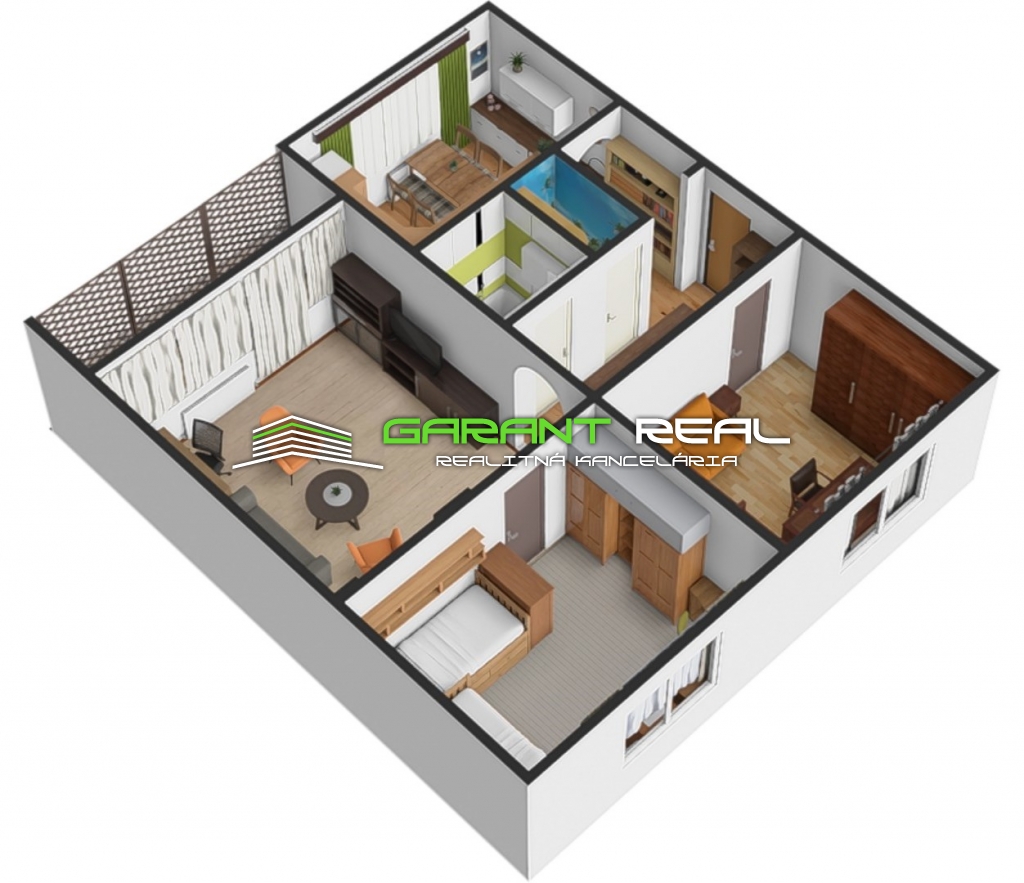 - z obývacej izby je riešená priestranná loggia 7,5 m2, zamrežovaná