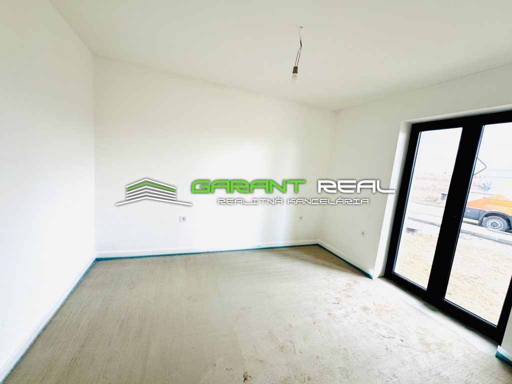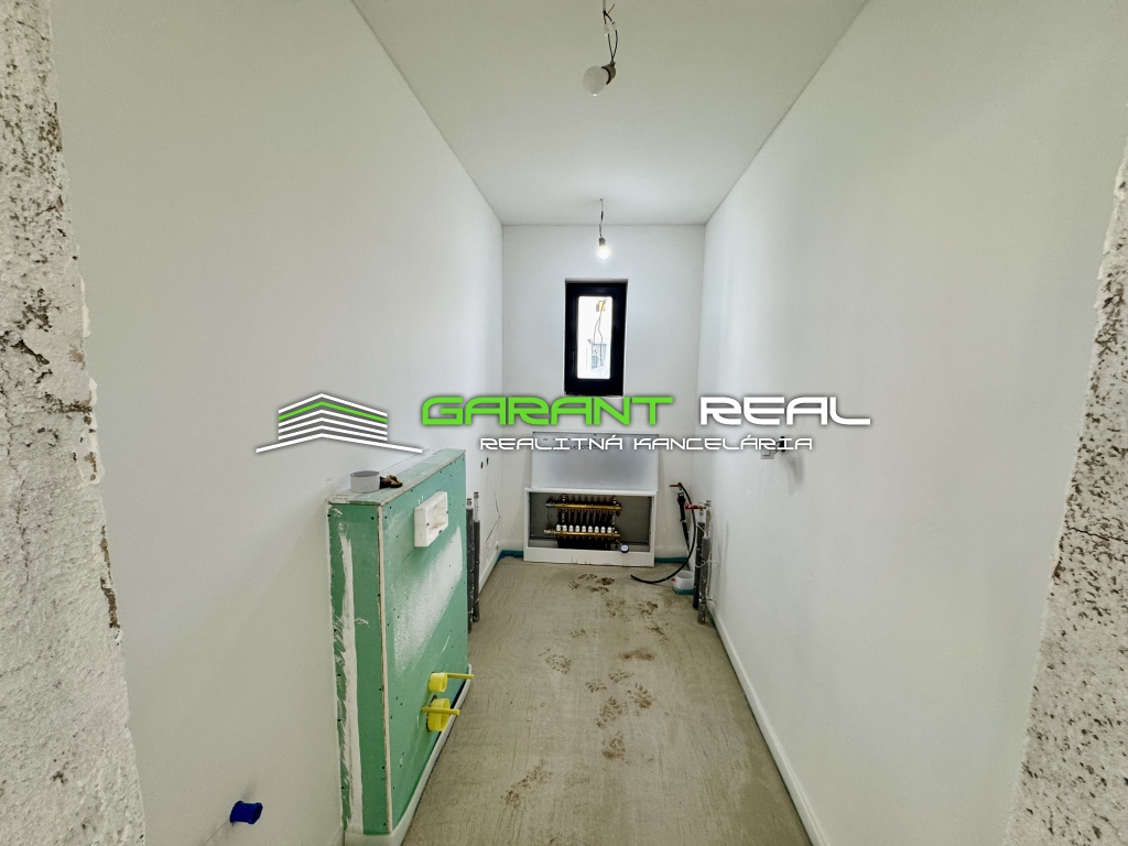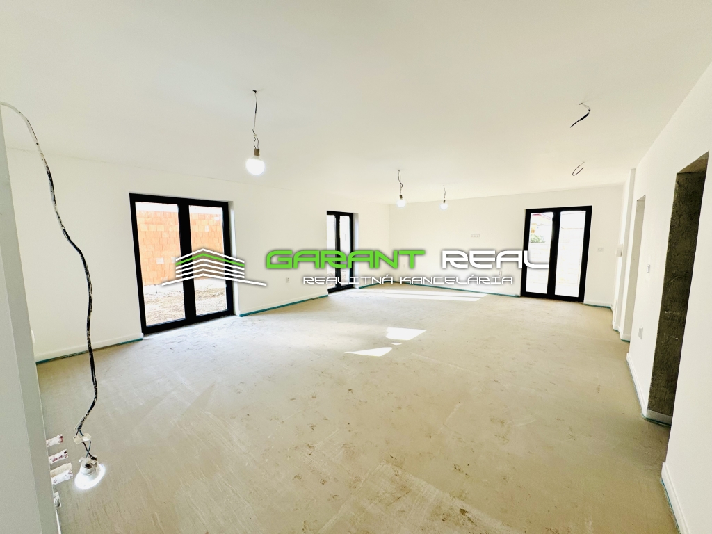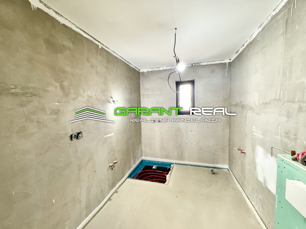 - dom je v súčasnosti so základnou nivelizačnou vrstvou podlahy, bez dverí, bez zárubní, bez vrchnej vrstvy podláh, vypínače a zásuvky sú namontované, s predprípravou na montáž kuchynskej linky, avšak bez kuchynského nábytku a sanity v kúpeľni, 2 x WC - Geberit bude nainštalované
