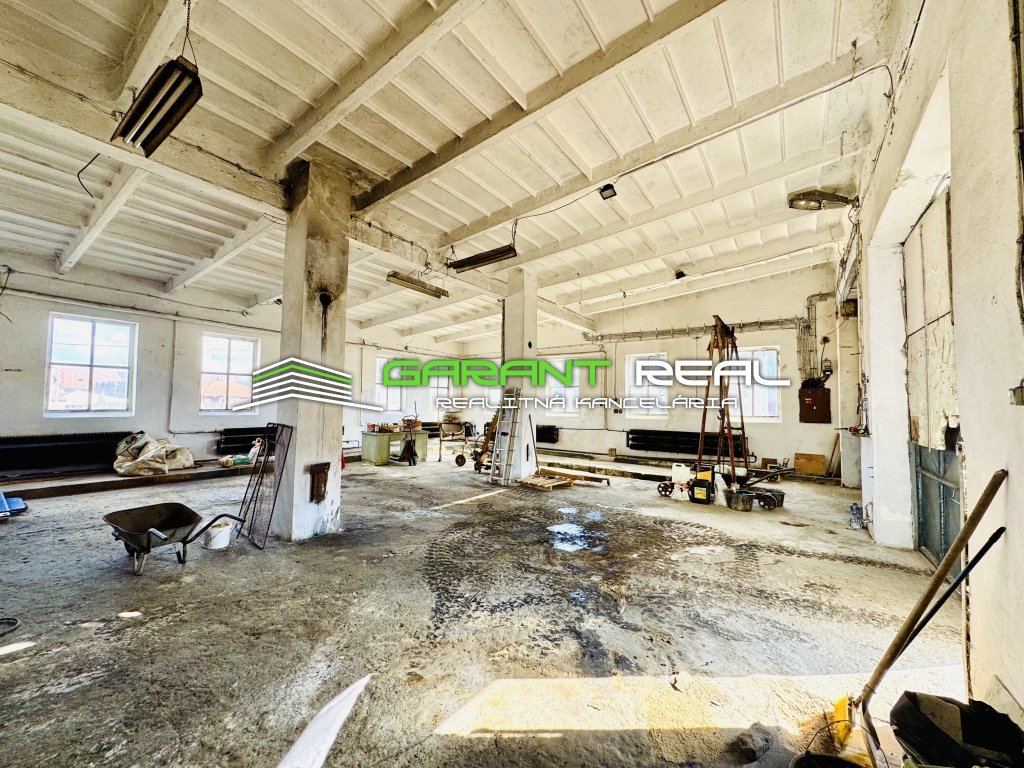 Ponúkame na predaj veľkometrážne garáže pre nákladné autá, využiteľné aj ako skladové priestory s pozemkom pred budovami, spolu zastavaná plocha objektov a dvor 882 m2 + ďalší pozemok s vecným bremenom na ploche 226 m2, úžitková plocha garáží 340 m2, Veľký Šariš